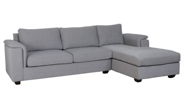 Harmony Fabric L Shape Sofa Set (3 + Lounger) Light Grey – by Vassio